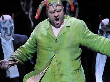 El tonto aparece verde venenoso en la producción de »Rigoletto« de Nikolaus Lehnhoff, y la burla con la que arremete contra los cortesanos del duque de Mantua es venenosa. Sin embargo, su interior es negro, siempre preocupado por su hija Gilda, a quien protege celosamente para protegerla de las garras del duque, un temido mujeriego. Cuando Gilda es víctima del duque, Rigoletto jura sangrienta venganza. Pero esto recae en él mismo... »Rigoletto« se estrenó en 1851 en el Teatro La Fenice con un éxito abrumador. Giuseppe Verdi había creado una música que él mismo calificó de "revolucionaria", y el drama profundamente impactante de la que quizás sea la mejor ópera del gran italiano se desarrolla con una densidad musicodramática nunca antes escuchada.