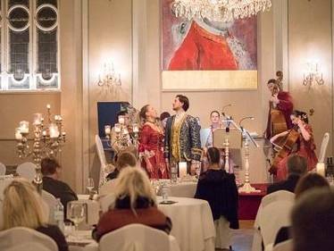 Hoy los dos cantantes de ópera y cinco instrumentistas del AMADEUS CONSORT, que existe desde 1996, interpretarán para usted arias y dúos de las grandes óperas de Mozart "La flauta mágica", "Don Giovanni" y "Las bodas de Fígaro". El famoso primer movimiento de la serenata “A Little Night Music” completa el programa. La cena se interpreta de forma moderna basándose en recetas históricas de la época de Mozart y consta de tres platos.