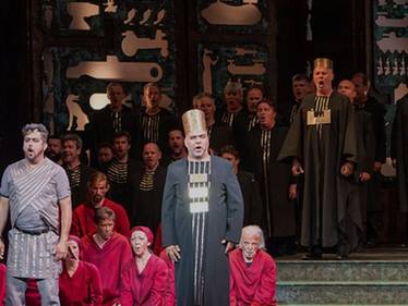 Les protagonistes vulnérables d'Aida sont confrontés à un dilemme moral angoissant : à quoi doivent-ils être loyaux ? À leur patrie ? À leur famille ? Ou à leur amour ? L'histoire de l'opéra est un produit de la guerre : non seulement dans son écriture, mais aussi sur la scène. Les sons de la guerre résonnent tout au long du récit de la princesse et du roi éthiopiens captifs, et du commandant égyptien abattu par et pour l'amour. Bien que l'Égypte remporte une victoire à la Pyrrhus, ce triomphe tant désiré entraîne la ruine de tous ceux qui l'ont souhaité. Il s'agit d'une histoire sur la guerre, un sujet aussi vieux que l'homme et qui perdurera aussi longtemps que notre espèce. La guerre choisit la vie ou la mort pour des millions de personnes, divise les familles et les amoureux, et imprègne les pays en guerre et leurs habitants de tous ordres et de tous rangs, du pharaon à l'esclave. Mais il y a une chose qui ne peut jamais être vaincue : la pureté de l'âme.