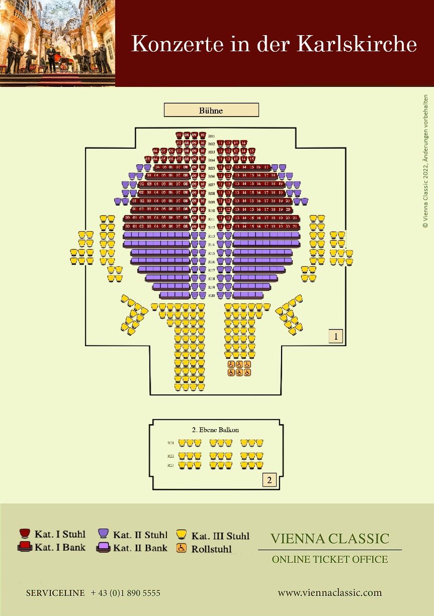 Il peut faire très froid en hiver et assez chaud en été dans la Karlskirche - il est recommandé de s'habiller en fonction de la météo afin de pouvoir profiter agréablement du concert.